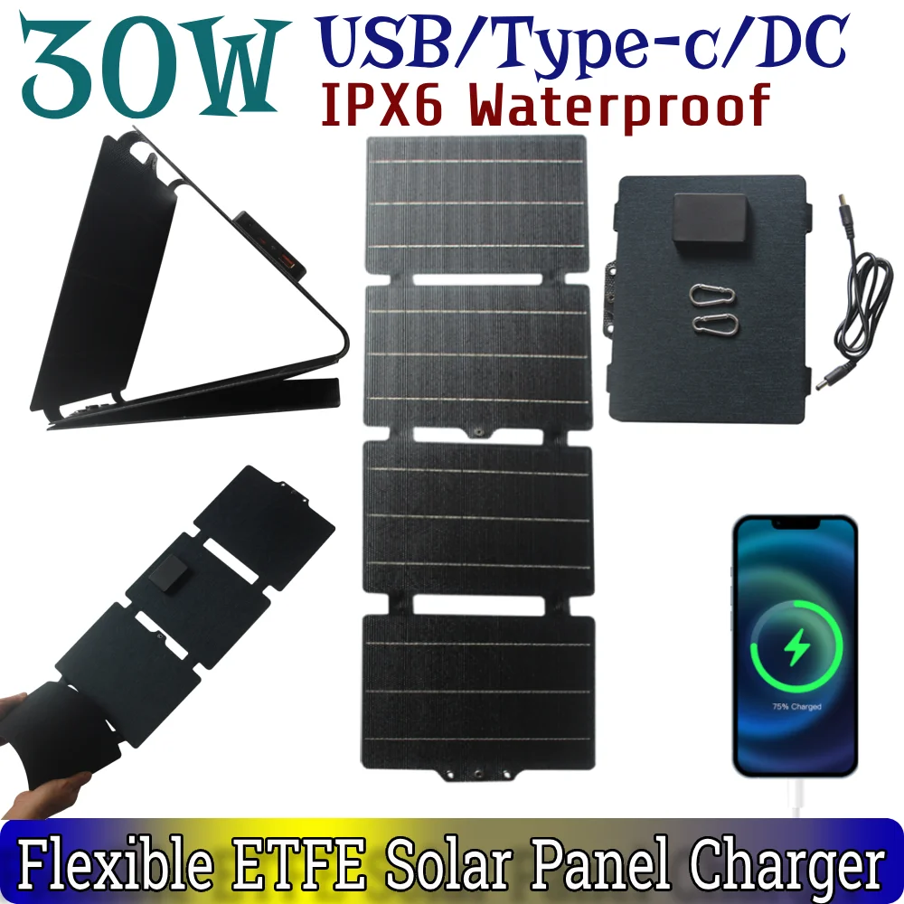 Power your adventures with the Versatile 30 W Solar Charging Bag! This waterproof, foldable powerhouse features four high-efficiency monocrystalline panels for fast charging on the go. With multiple output options including USB and Type-C, stay connected wherever you are. Compact and lightweight, it’s your ultimate outdoor companion!