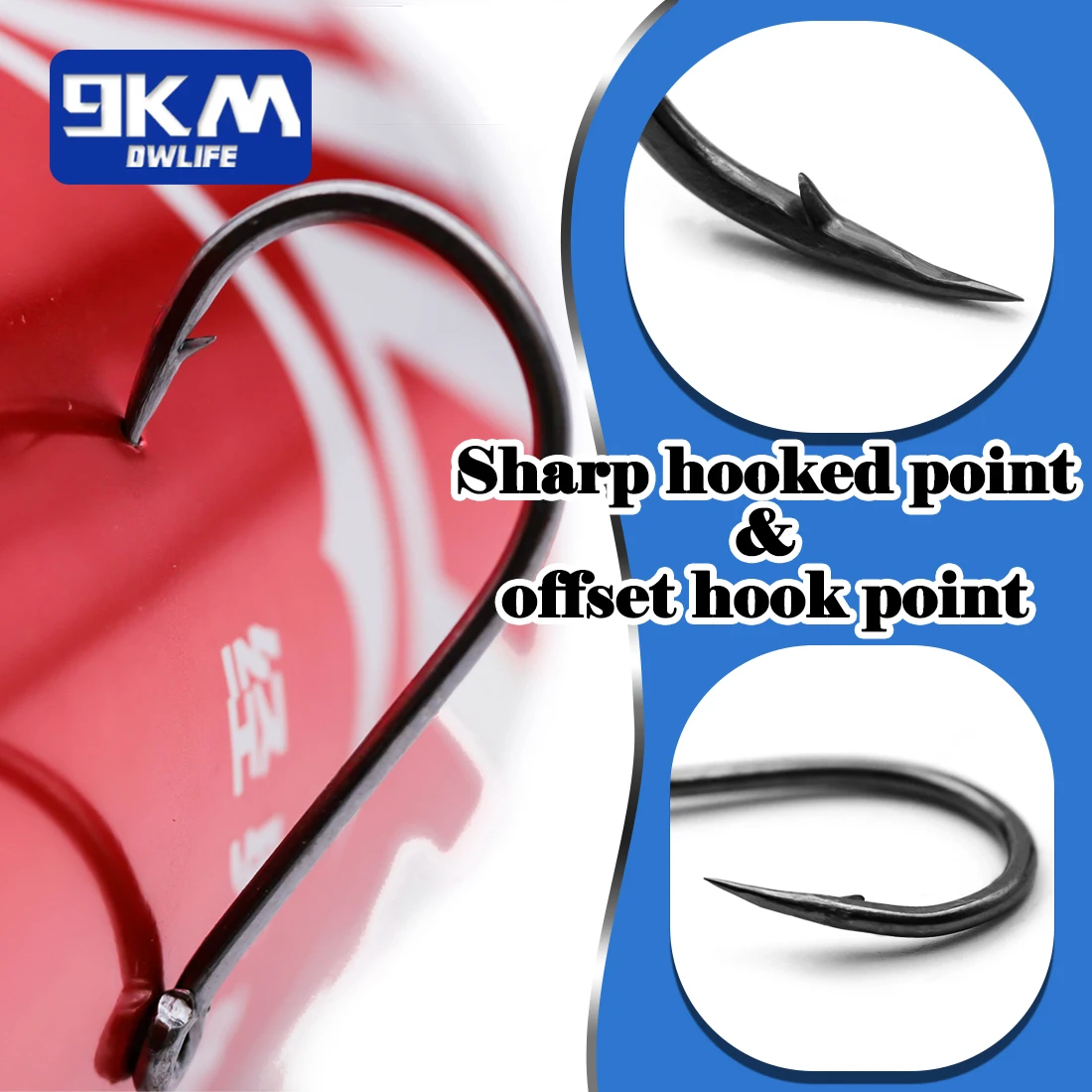 Elevate your fishing game with the 9 KM Fishing Hooks! Crafted from high carbon steel, these barbed hooks offer unmatched strength and corrosion resistance. With 17 sizes, they ensure perfect penetration and a secure hold, making it easy to catch carp, bass, and salmon. Gear up for your next adventure and reel in the big ones!