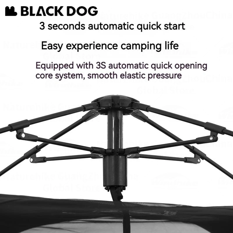 Unleash your spirit of adventure with the BLACKDOG Automatic Tent, engineered for seamless outdoor experiences. Designed for campers who crave efficiency and durability, this tent combines cutting-edge technology with rugged performance to keep you sheltered, cool, and protected in any weather. Its sleek black coating and strategic ventilation make it a standout choice for exploring nature, whether you're hiking through dense forests, camping near mountain peaks, or relaxing by a lakeside. This tent is your reliable companion for three-season use, offering a perfect balance of comfort and functionality.