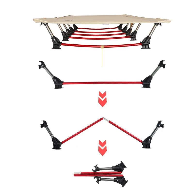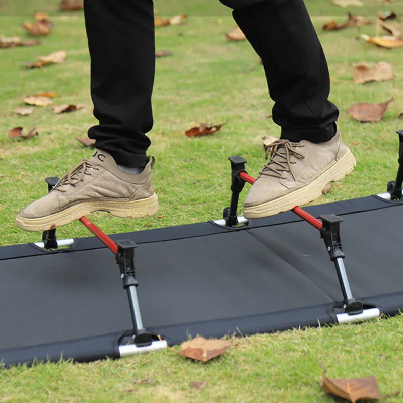 Materials: Lightweight aluminum alloy frame; tear-resistant Oxford cloth bed. Designed for durability, stability, and packability without unnecessary bulk.