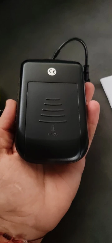 As in the picture. I haven't tried it yet, but it seems like an excellent product. Range 100 m, sufficient for me.