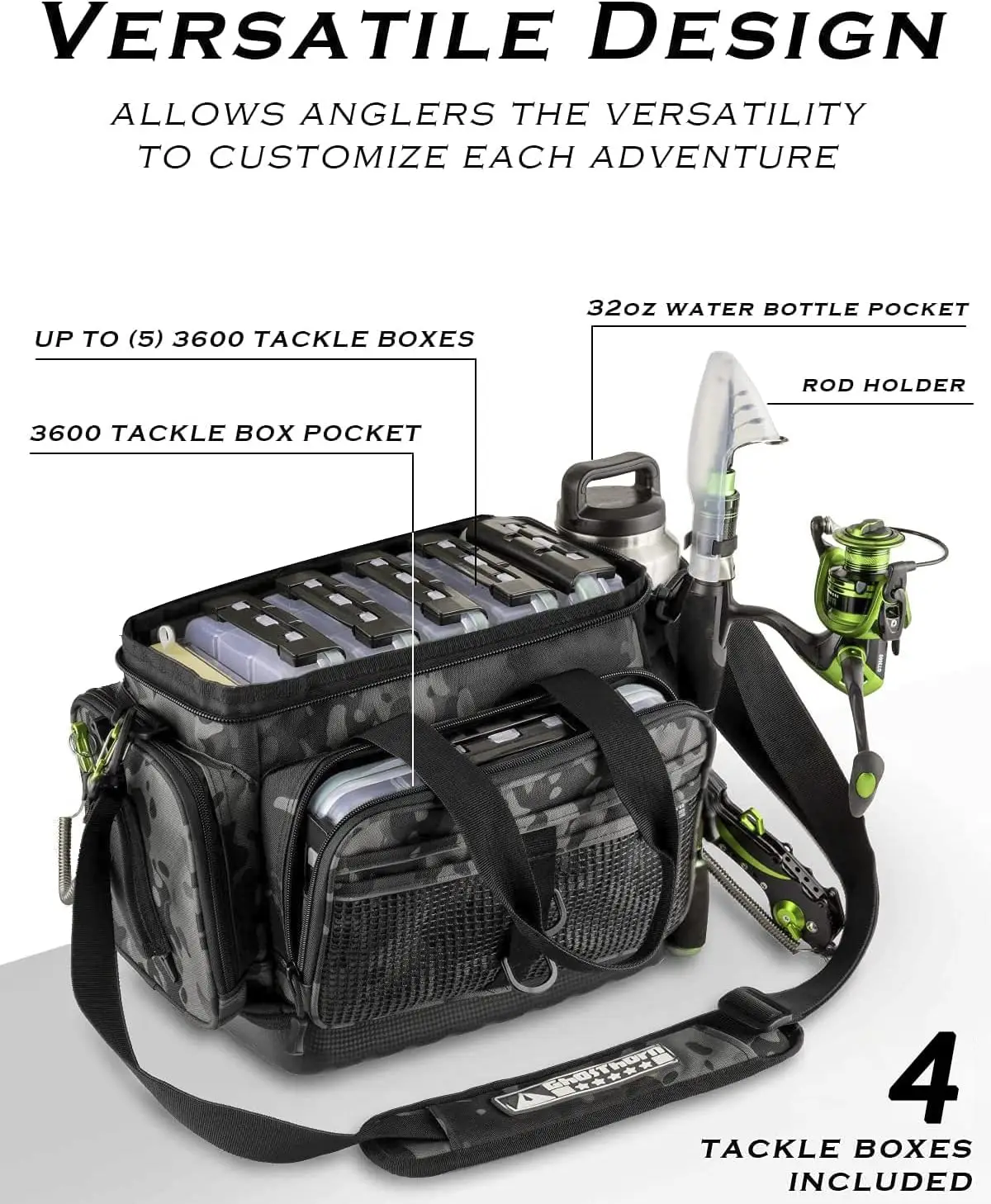 - Comes with four spacious 3600 fishing boxes for organized tackle storage.