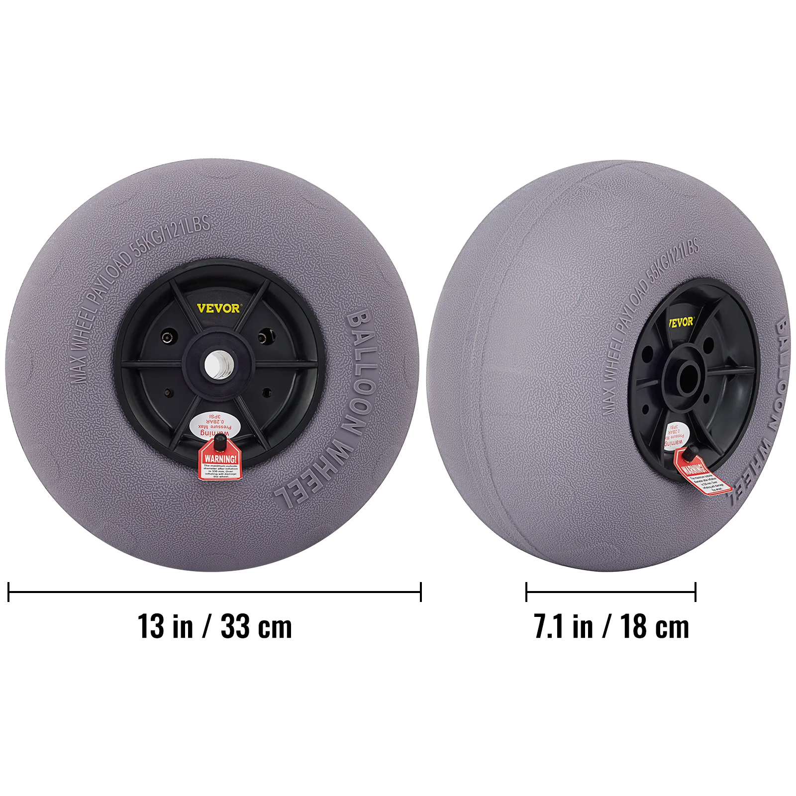- Wheel diameter before inflation: 11.8 in/30 cm; after inflation: 13 in/33 cm – perfect for stability and maneuverability.