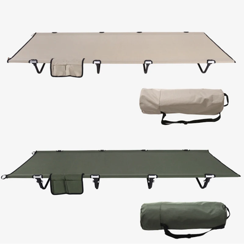 Materials: Reinforced fabric sleeping surface with robust metal support rods and connectors engineered for repeated setup and takedown.