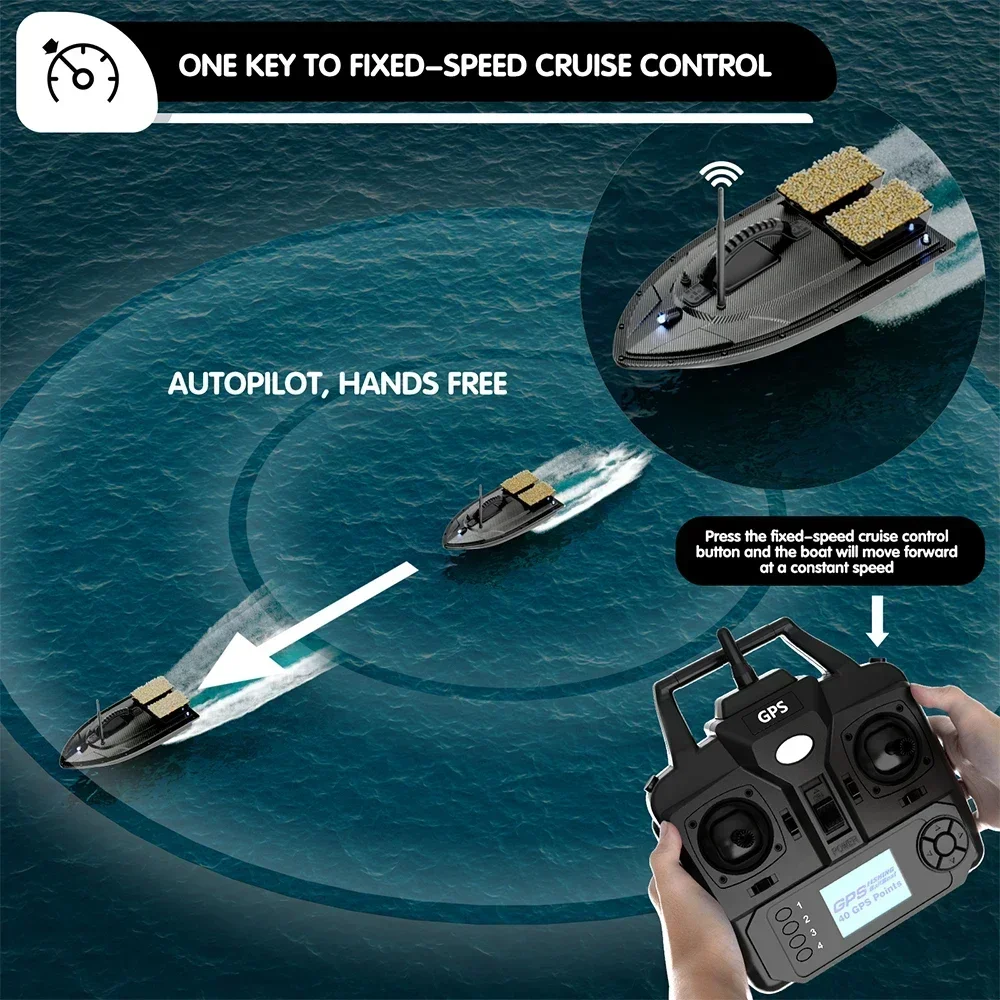 - Automatic cruise mode: Set your course and let the bait boat do the work, allowing you to focus on your fishing techniques.