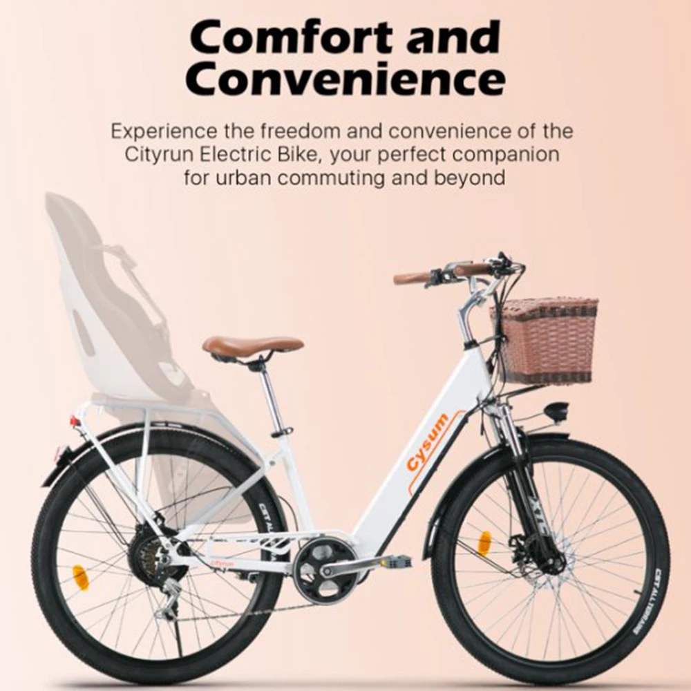 Discover the freedom of exploration with the Women's 26" Electric Ebike! Featuring a powerful 250W motor, this stylish ride reaches speeds up to 25 km/h and offers an impressive range of over 60 km. Enjoy the convenience of a basket and cup holder for your adventures. Experience comfort, style, and efficiency on every journey!